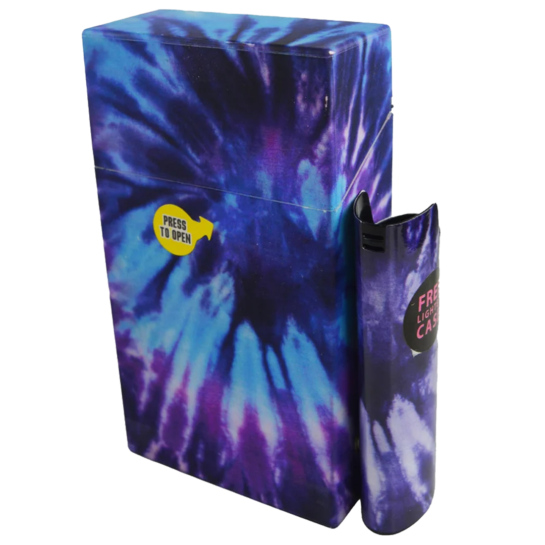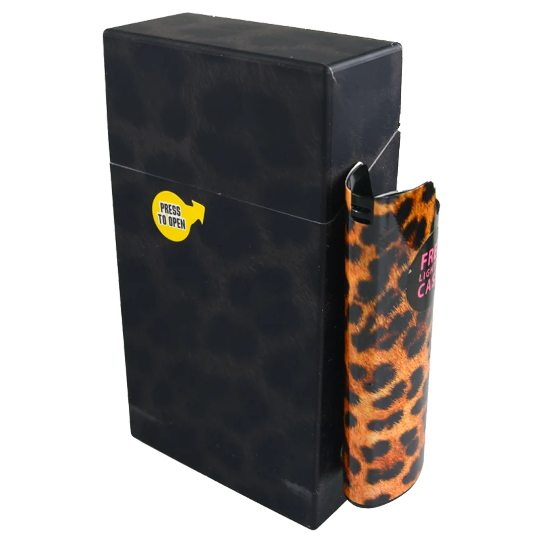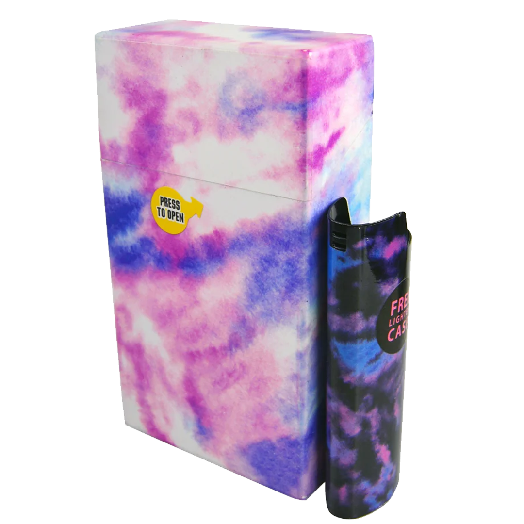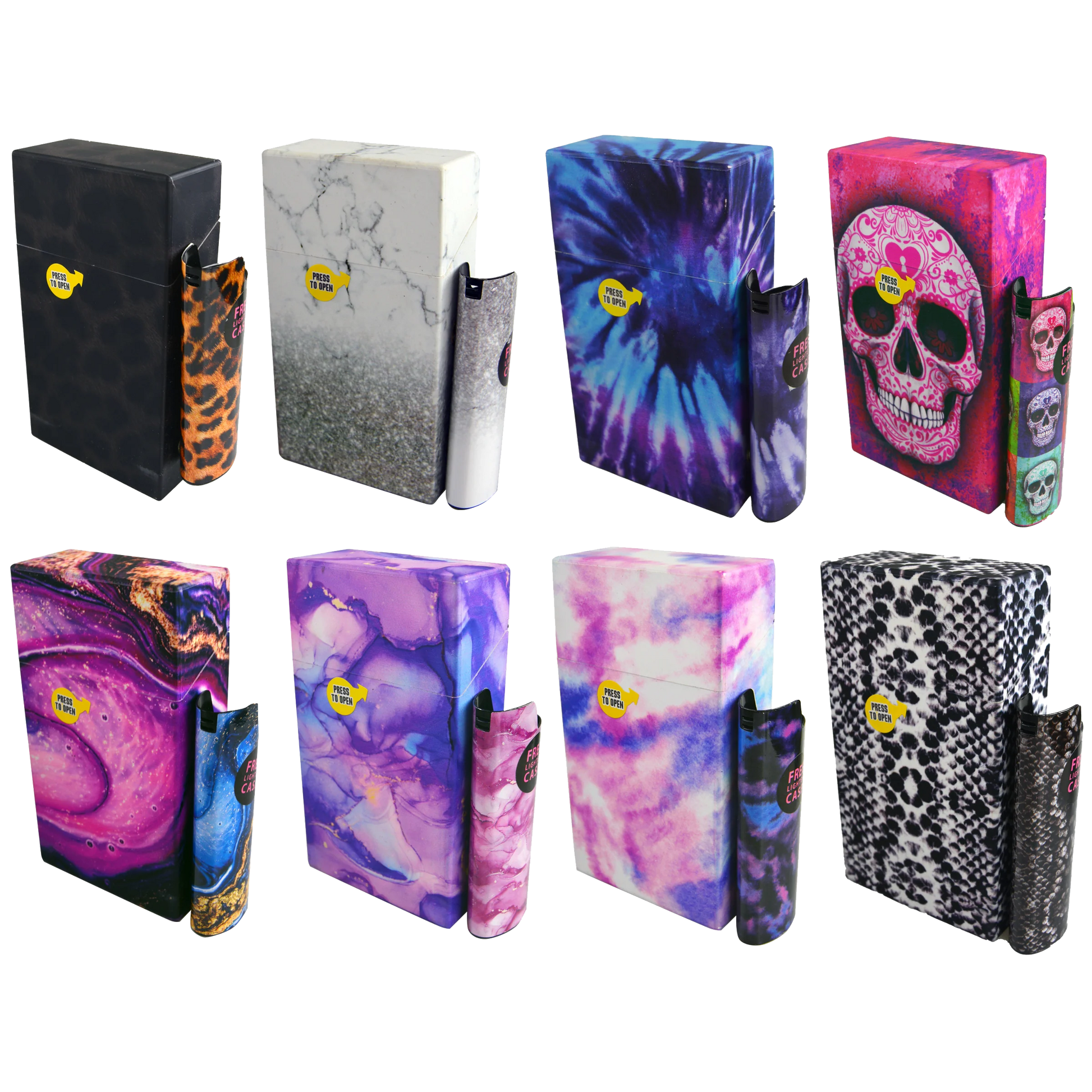This 100's Flip Top Cigarette & Lighter case is perfect for keeping your cigs safe, storing money, and lots more! Fits 100's sized cigarette boxes. The strong magnets on the side of the cig case keeps the included lighter case together so you won't lose it!