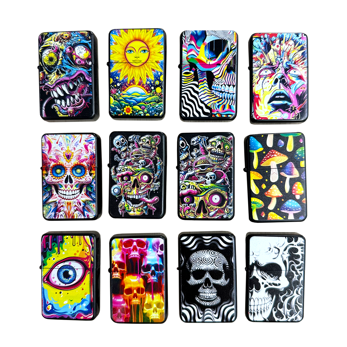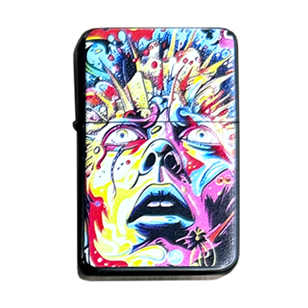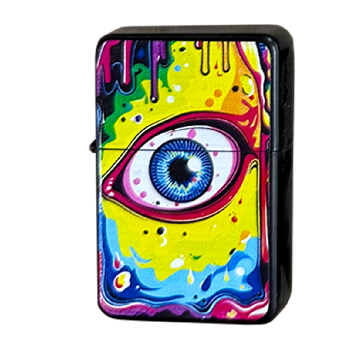 Revolutionize your smoking experience with our Mind-Bending Metal Flip Top Torch Lighter! Plus, with the removable insert, it conveniently fits into standard Zippo® style cases. Available in a variety of psychedelic designs, this lighter is a must-have for any smoking enthusiast.