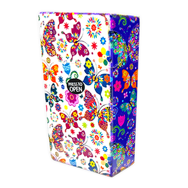 Hard flip top style cigarette case. Fits 100s cigarettes. Multi-use protective hard case perfect for cigarettes, small phones, and more! Comes in assorted colors and designs.