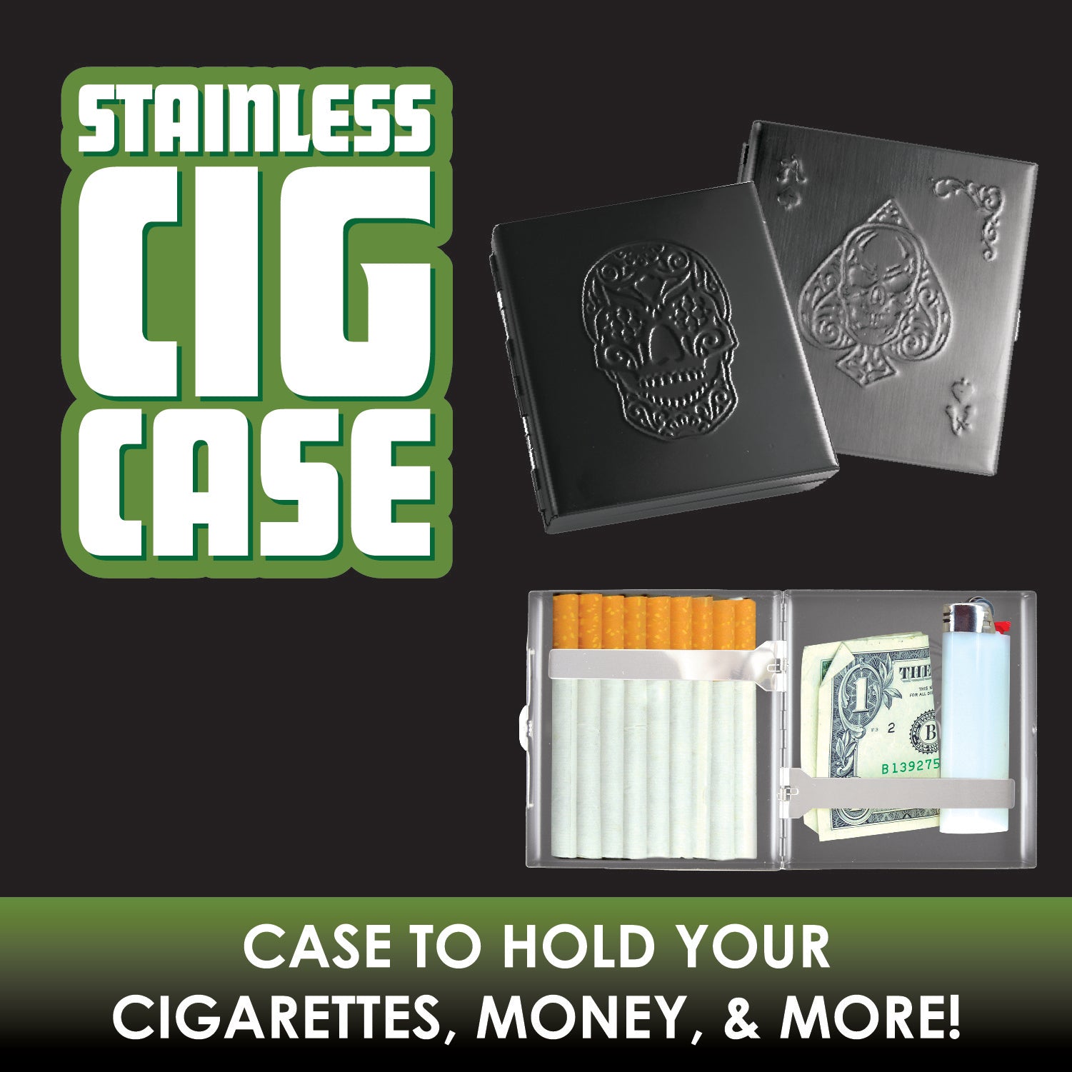 Be ready for any adventure with this sleek, versatile food-grade Stainless Steel Cigarette Case. Keep your cigs, cash, and other essentials secure in one place! Choose from a range of trendy styles.