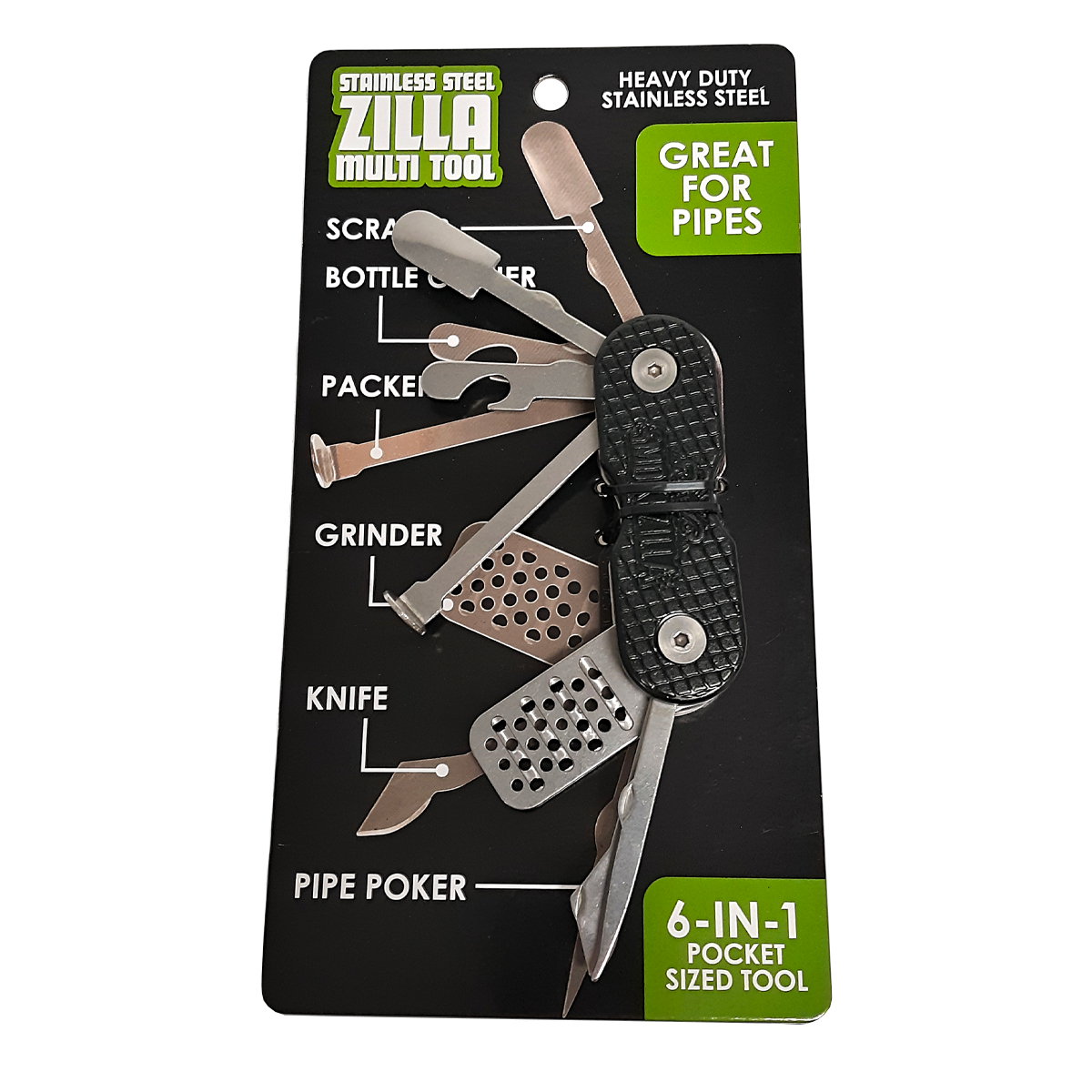 This 6-in-1 Pocket Sized Multi-Tool is crafted from heavy-duty stainless steel, making it a durable and versatile option for any task. Its features include a scraper, bottle opener, packer, grinder, knife, and pipe-poker.