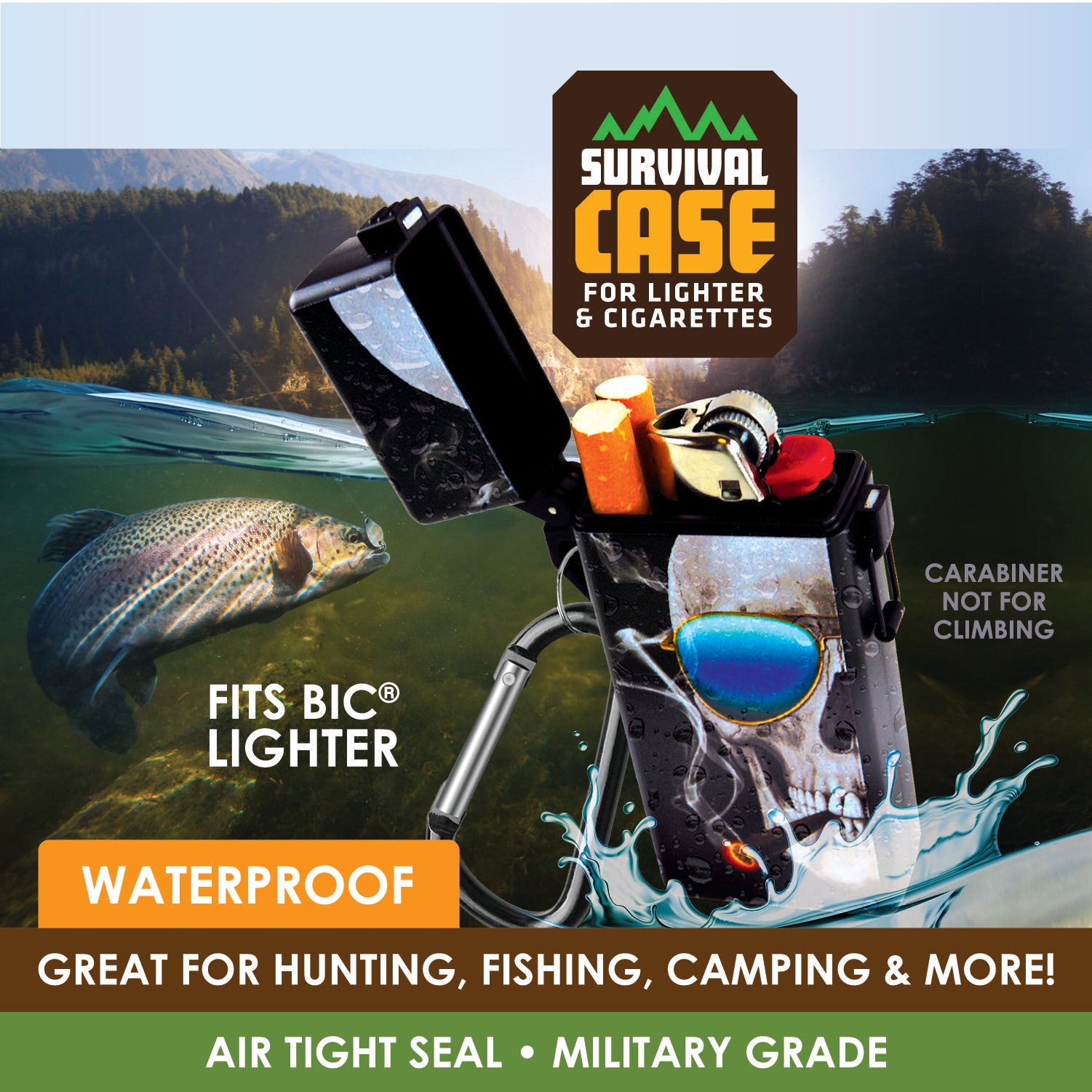Secure your cigs and lights with our waterproof and military-grade Survival Cig and Lighter Case. Featuring a magnetic closure and air-tight seal, your cigs and Bic or similarly shaped lighter will stay dry on all your outdoor adventures. Ideal for fishing, hunting, camping, and more! Choose from a variety of bold designs.